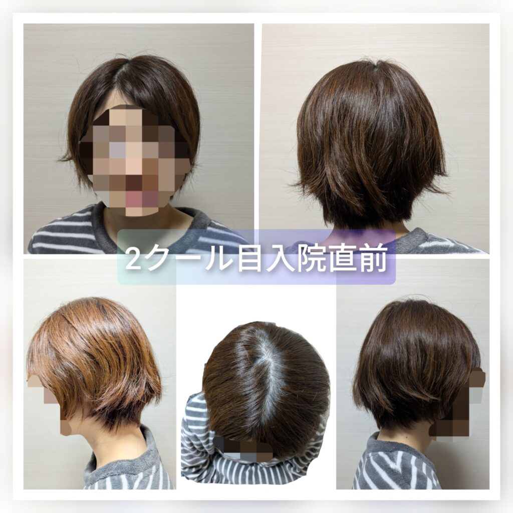 写真だと分からないのですが、2クール目入院2、3日前から髪の毛が抜け始めました。